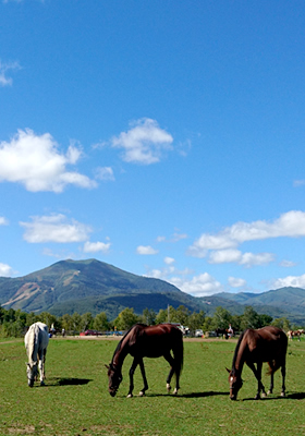 ニセコのシンボル 羊蹄山の麓、ニセコ連峰の山々に囲まれた自然豊かな環境で私共ニセコカントリーファームは日々を送っております。お越し頂く方々に当ファームで過ごすひとときが旅の素敵な想い出の一つとなれる事を願い、皆様のお越しをスタッフ、馬共々心よりお待ちしております。